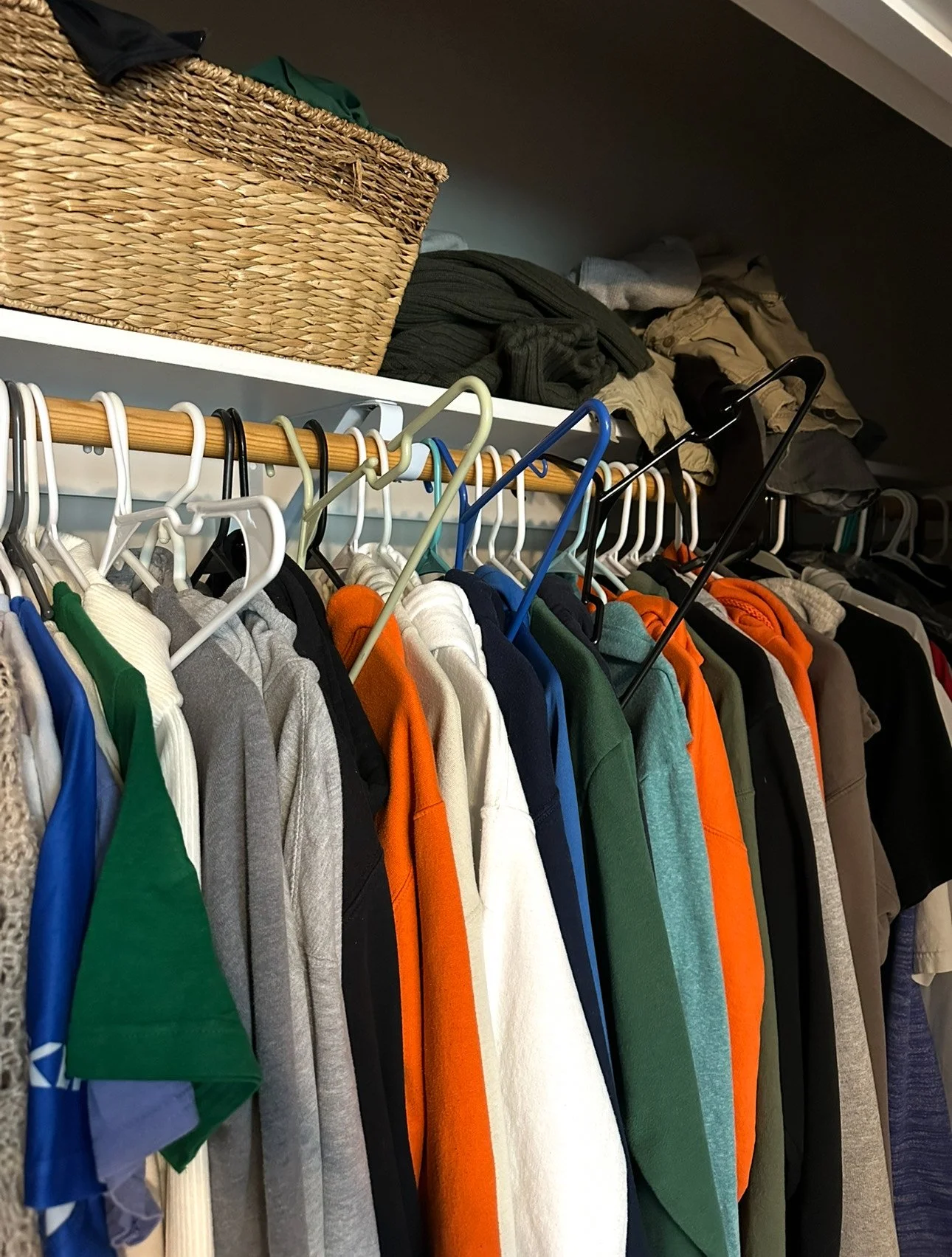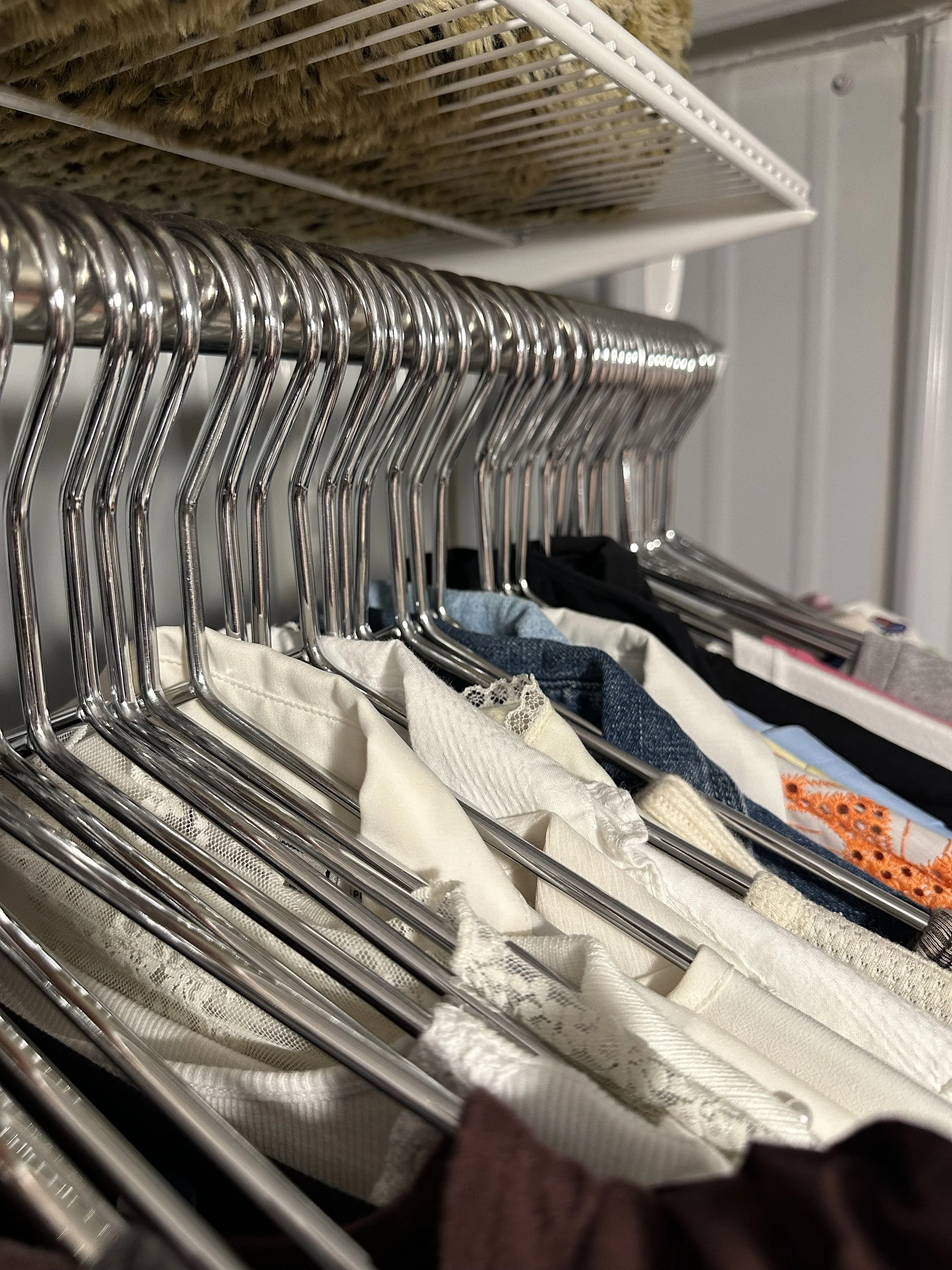 Hear me out, when your hangers have weight to them, you’re less likely to cram things in. You’re more likely to be intentional about what belongs in your closet.